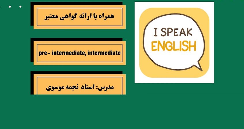 سطوح آموزشی این دوره پیشمیانی (pre-intermediate) و میانی (intermediate) را شامل میشود و تدریس آن را استاد نجمه موسوی برعهده دارد.